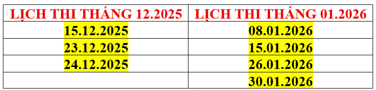 LỊCH THI MÔ TÔ A THÁNG 12-01/2025